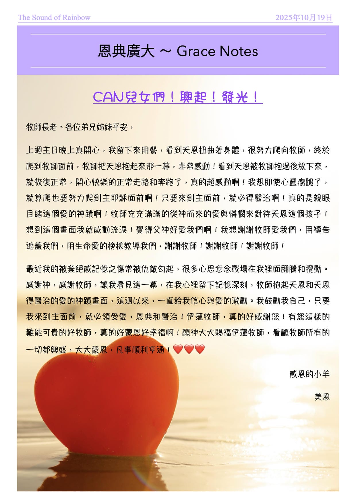 2025/10/19 美恩見證分享:CAN兒女們!興起!發光!