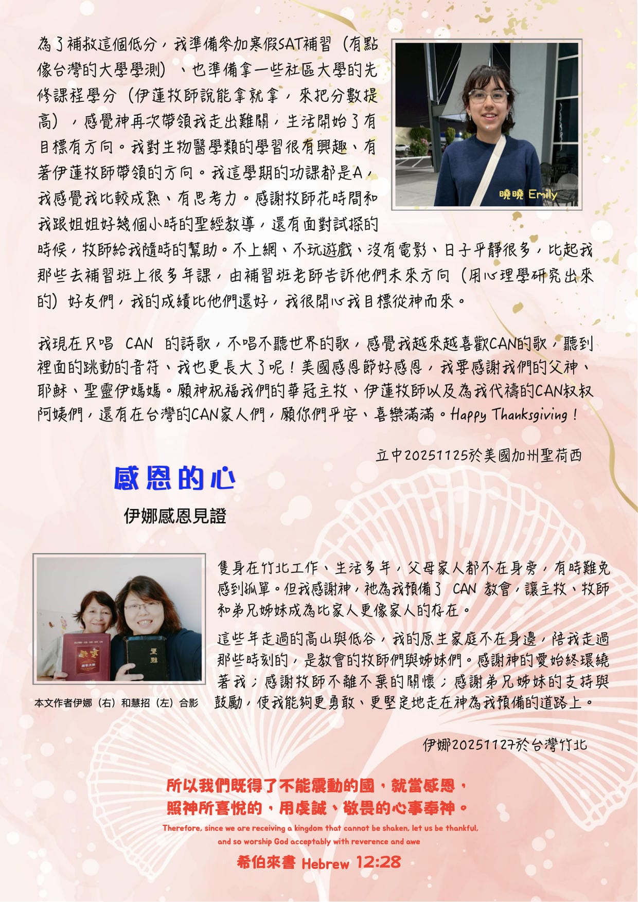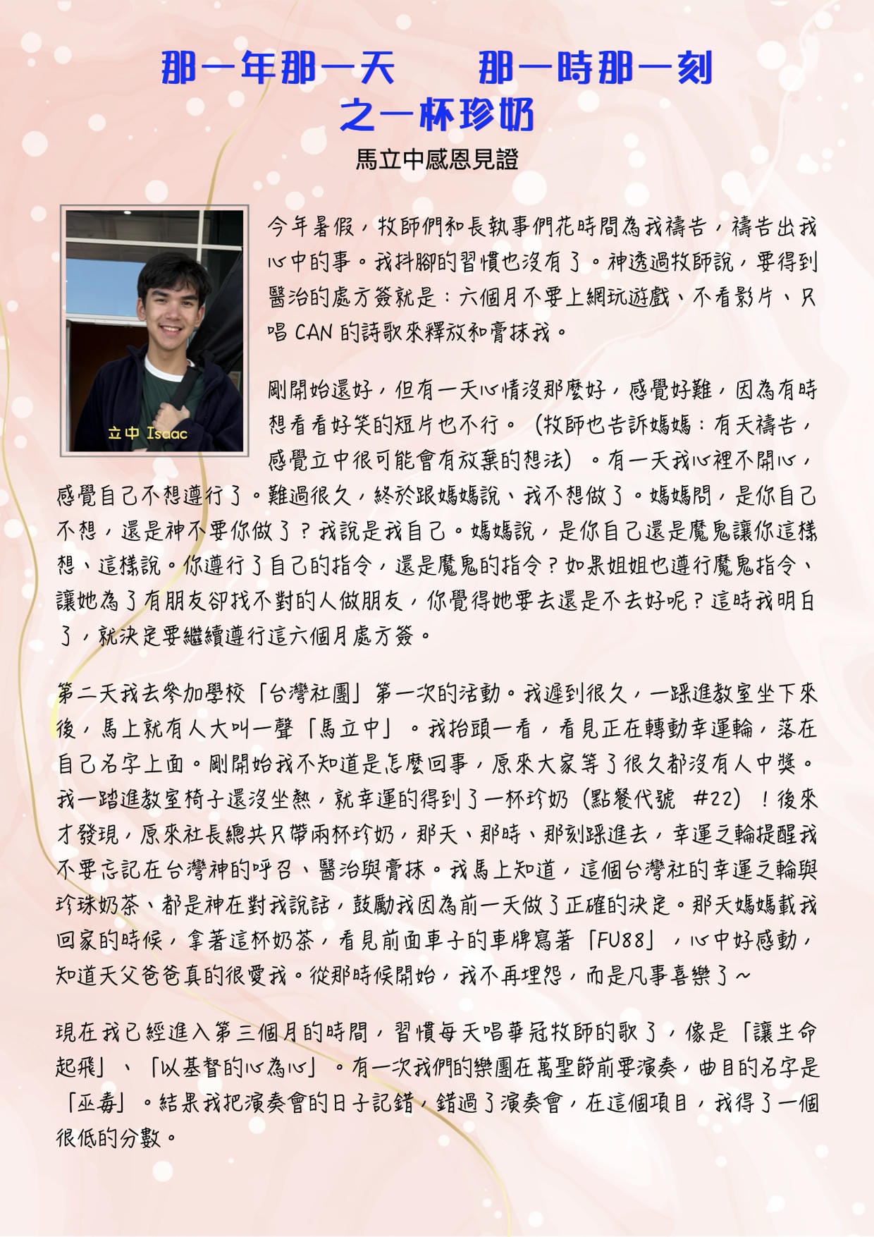 2025/11/30 立中見證分享:那一年那一天 那一時那一刻之一杯珍奶、伊那見證分享:感恩的心