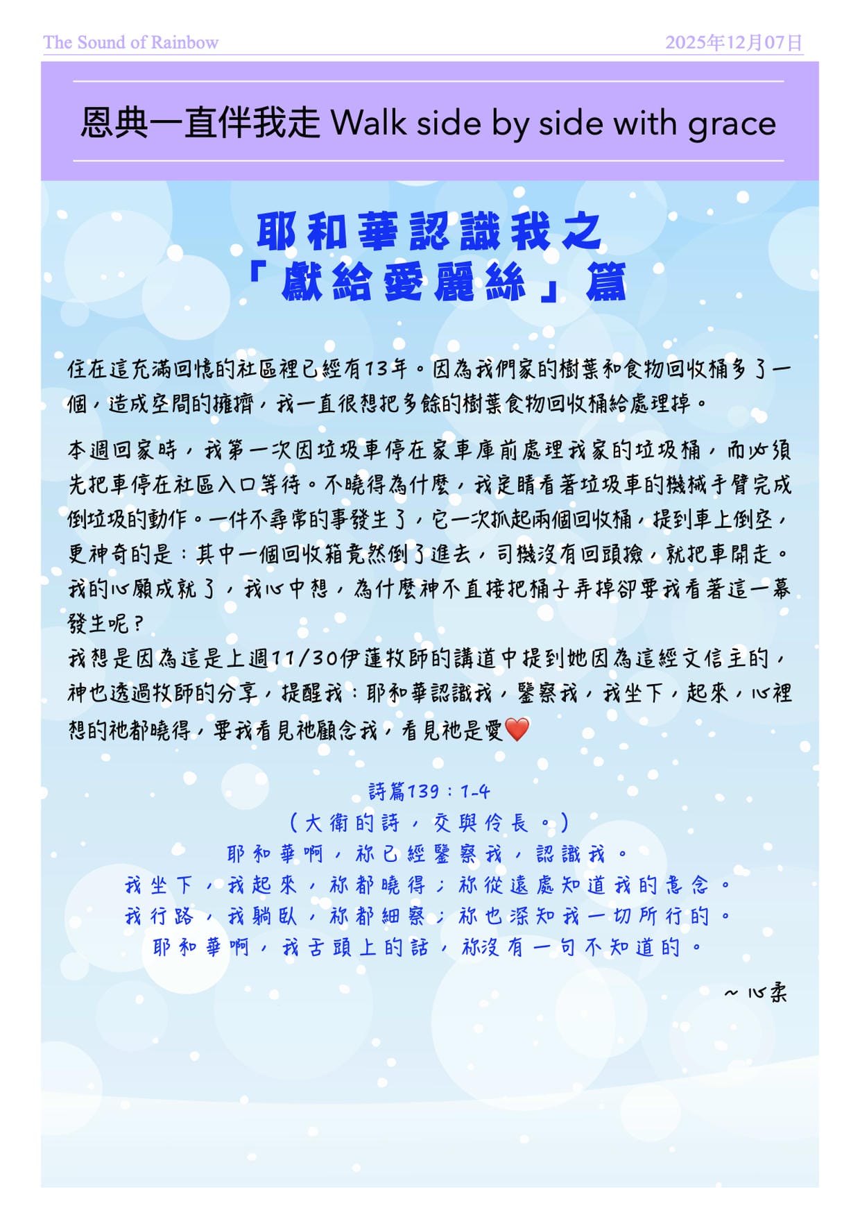 2025/12/07 心柔見證分享:靈魂的救主、耶和華認識我之「獻給愛麗絲」篇