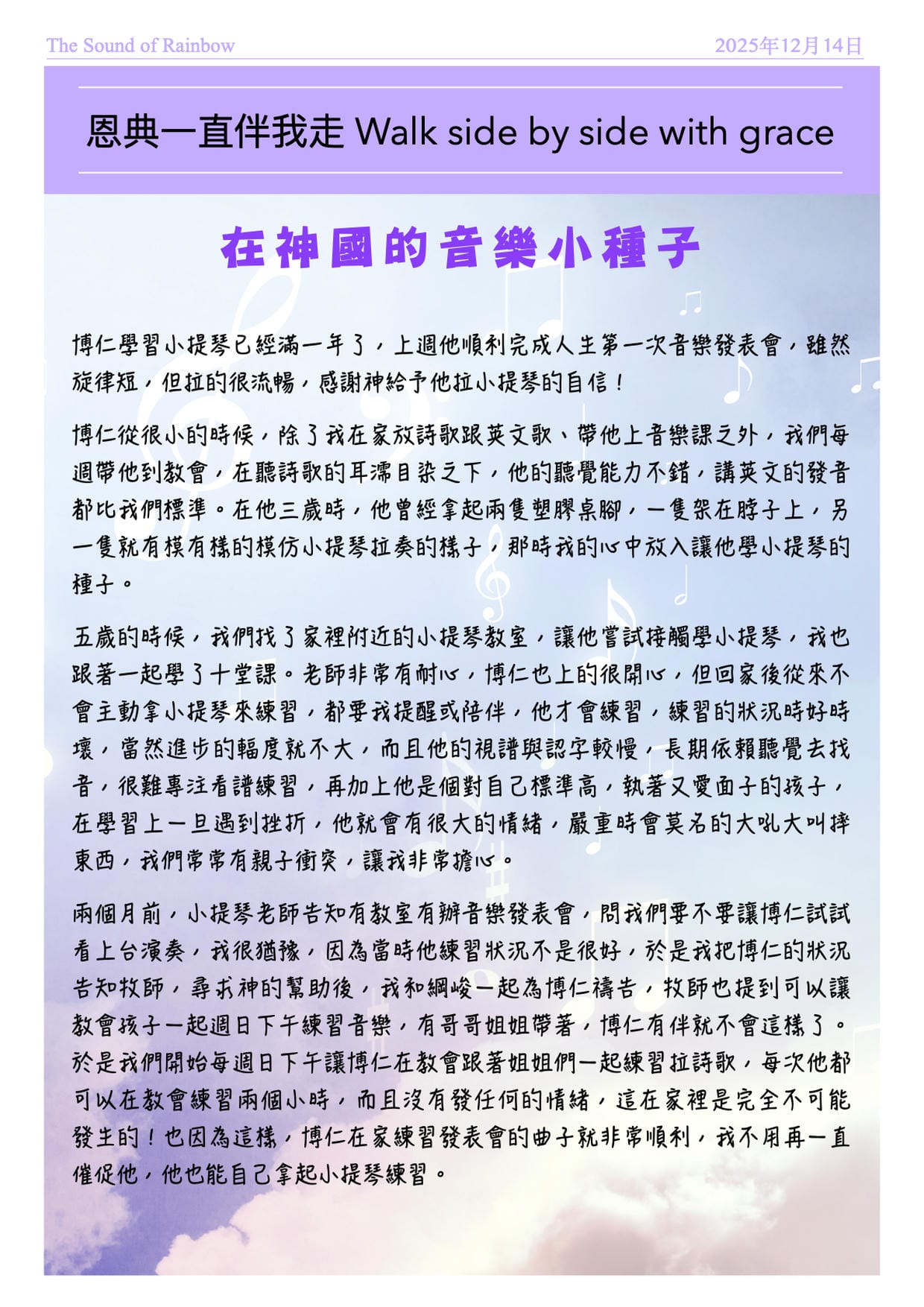 2025/12/07 鎂瑩見證分享:在神國的福音小種子