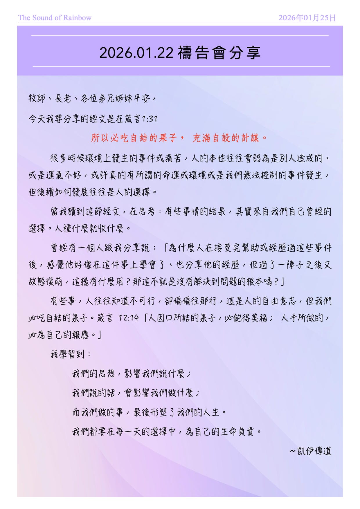 2026/01/22 凱伊傳道禱告會分享